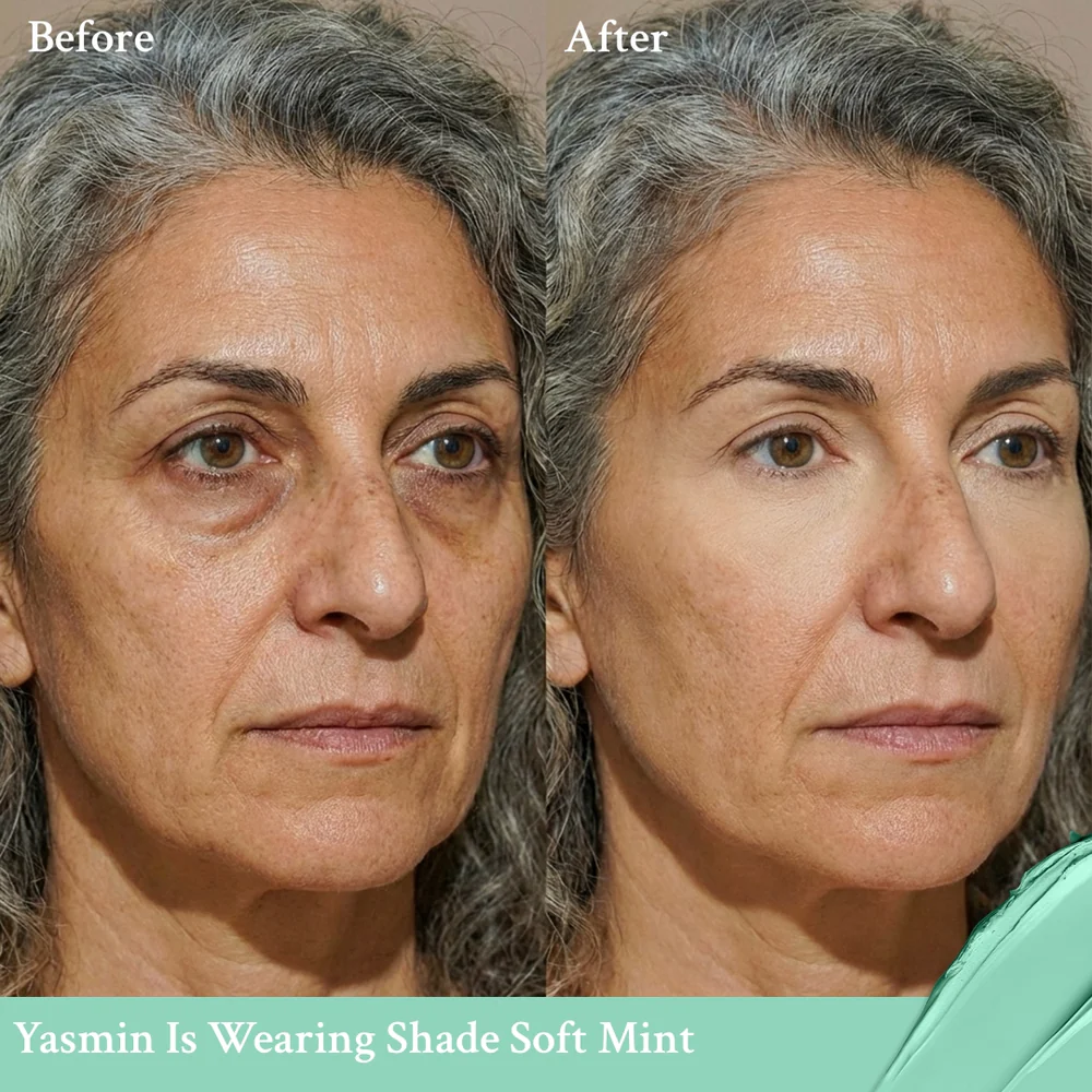 The redness under my eyes and on my cheeks looked calmed, less blotchy, and noticeably more even. The dark circles that usually made me look exhausted had brightened, and my skin tone looked naturally radiant—not covered up, but genuinely improved.