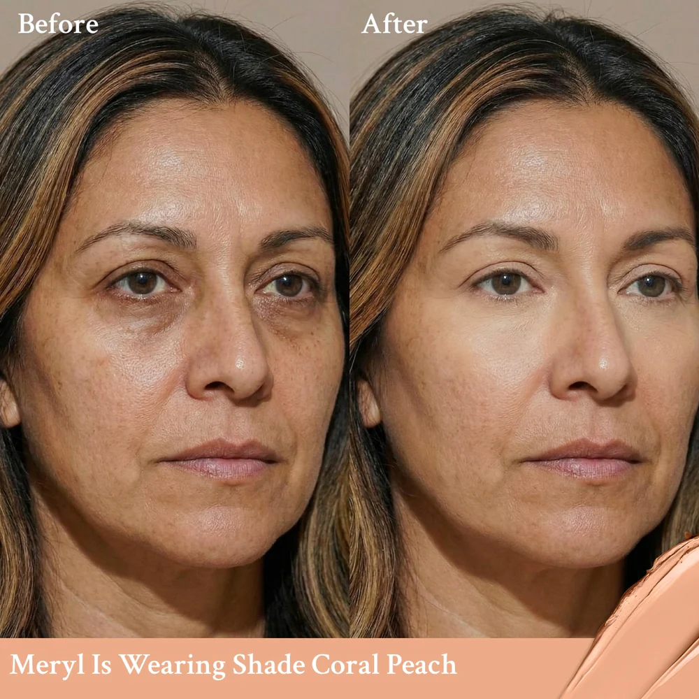 Instead of masking the issue, it actually corrects discoloration while nourishing your skin—so your complexion looks naturally radiant even before you add anything else. And when you do decide to layer concealer on top, it goes on smoother, stays put, and looks naturally flawless without the heavy, caked-on feeling.