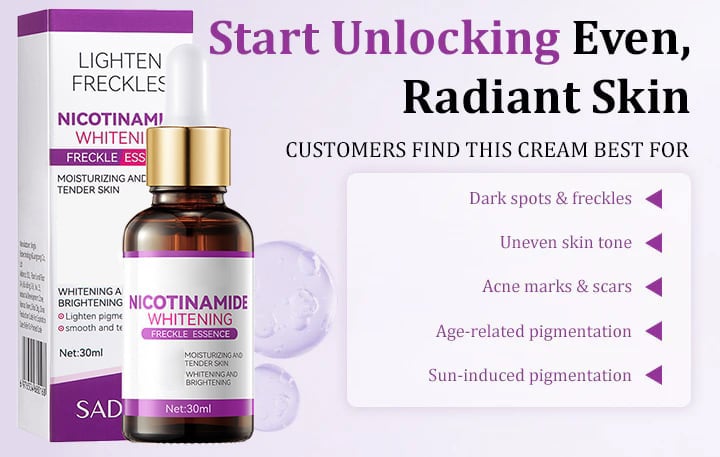 ✅ Multi-Dimensional Brightening: A blend of niacinamide, tranexamic acid, and plant-based ingredients works together to inhibit tyrosinase activity and reduce dark spots.