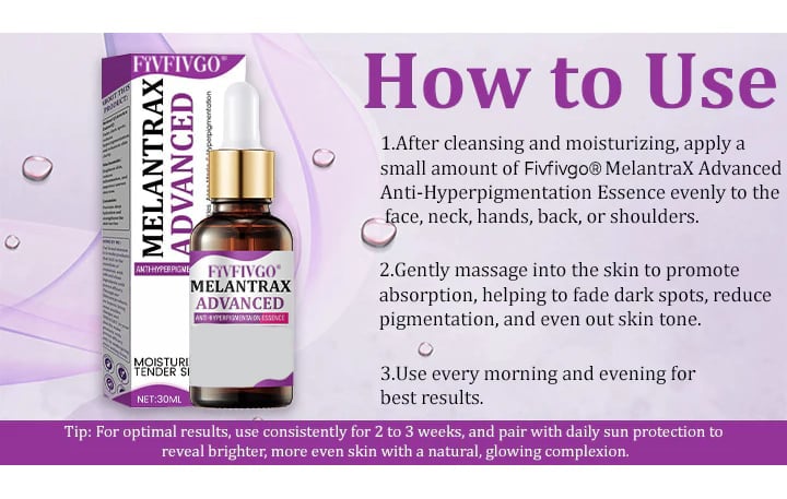 The formula of MelantraX Advanced Anti-Hyperpigmentation Essence is specially designed to target and reduce pigmentation, dark spots, and uneven skin tone, offering a gentle yet effective way to enhance skin brightness with visible results.