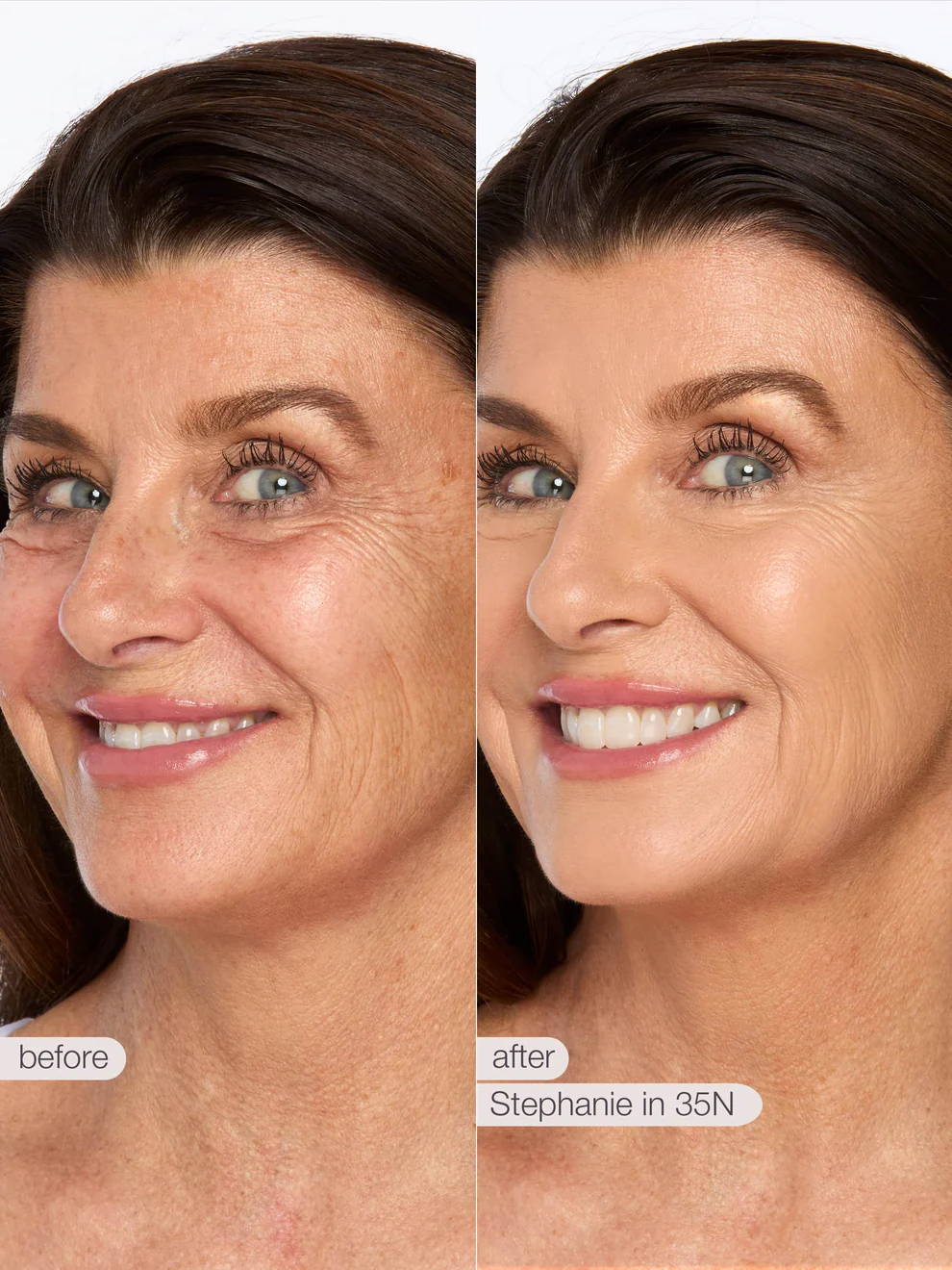 Wave goodbye to pores, fine lines, and dullness in seconds. With over 50% skin-loving ingredients, this creamy, buildable formula blends like butter for a natural matte finish that lasts all day.