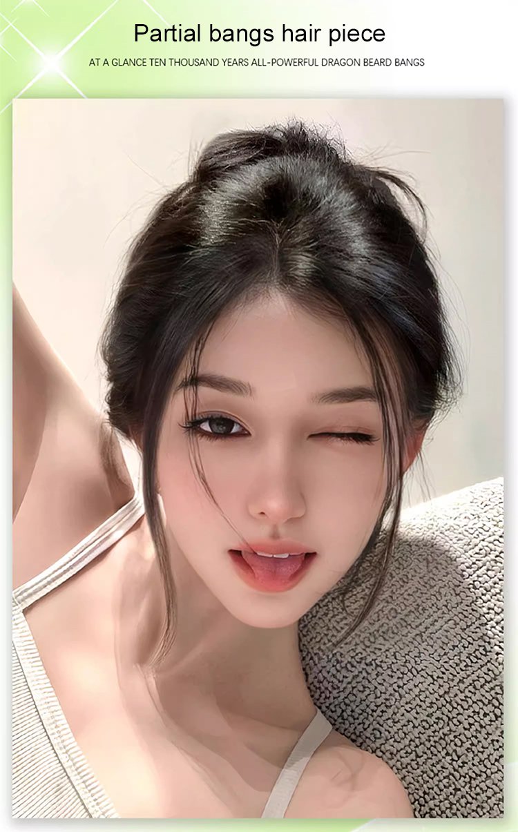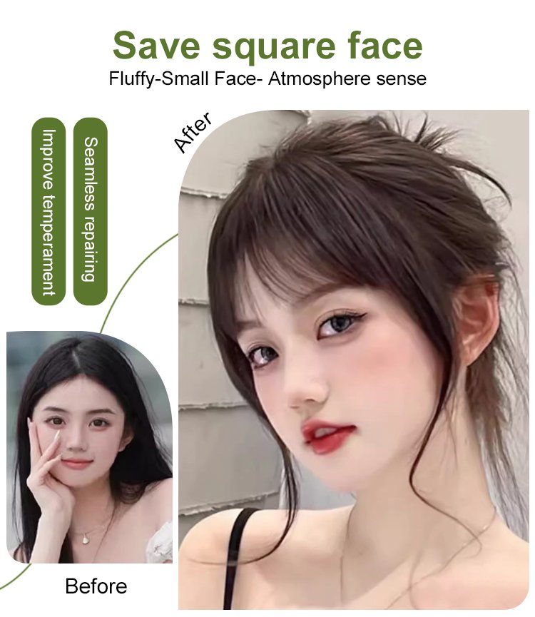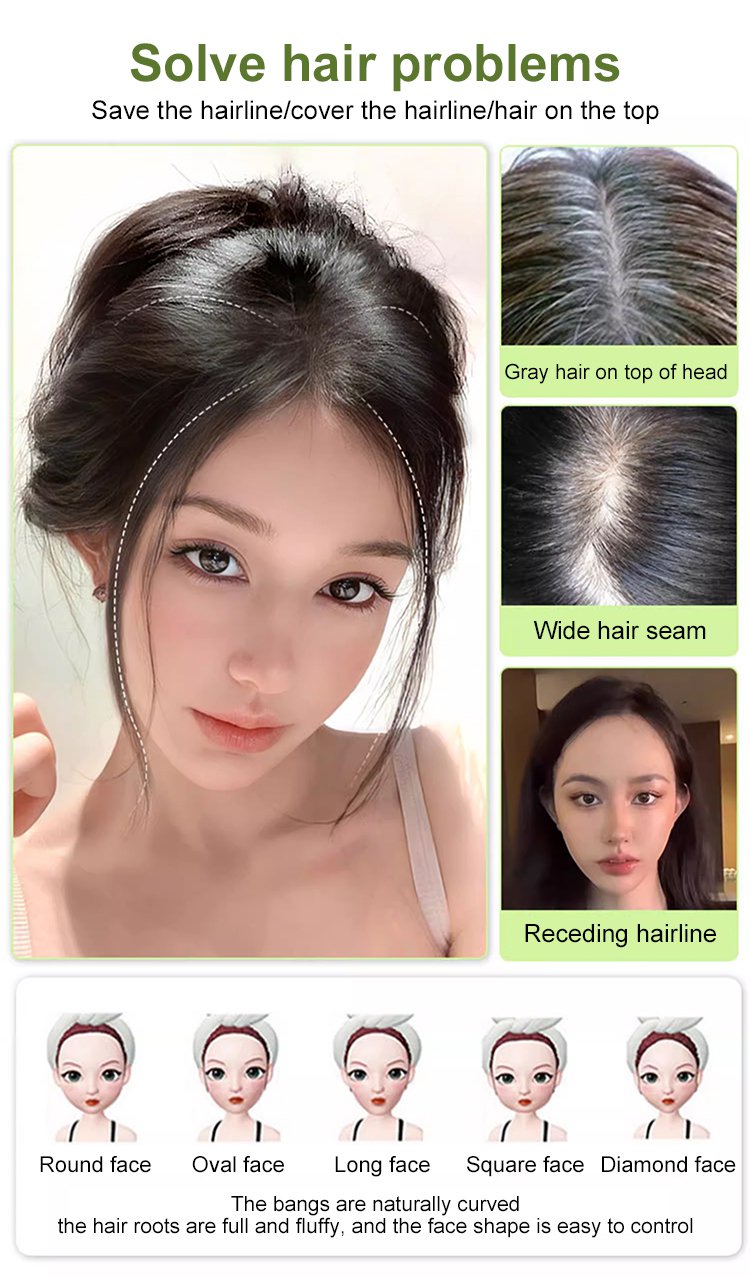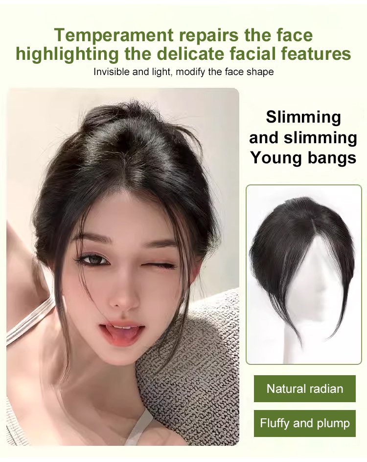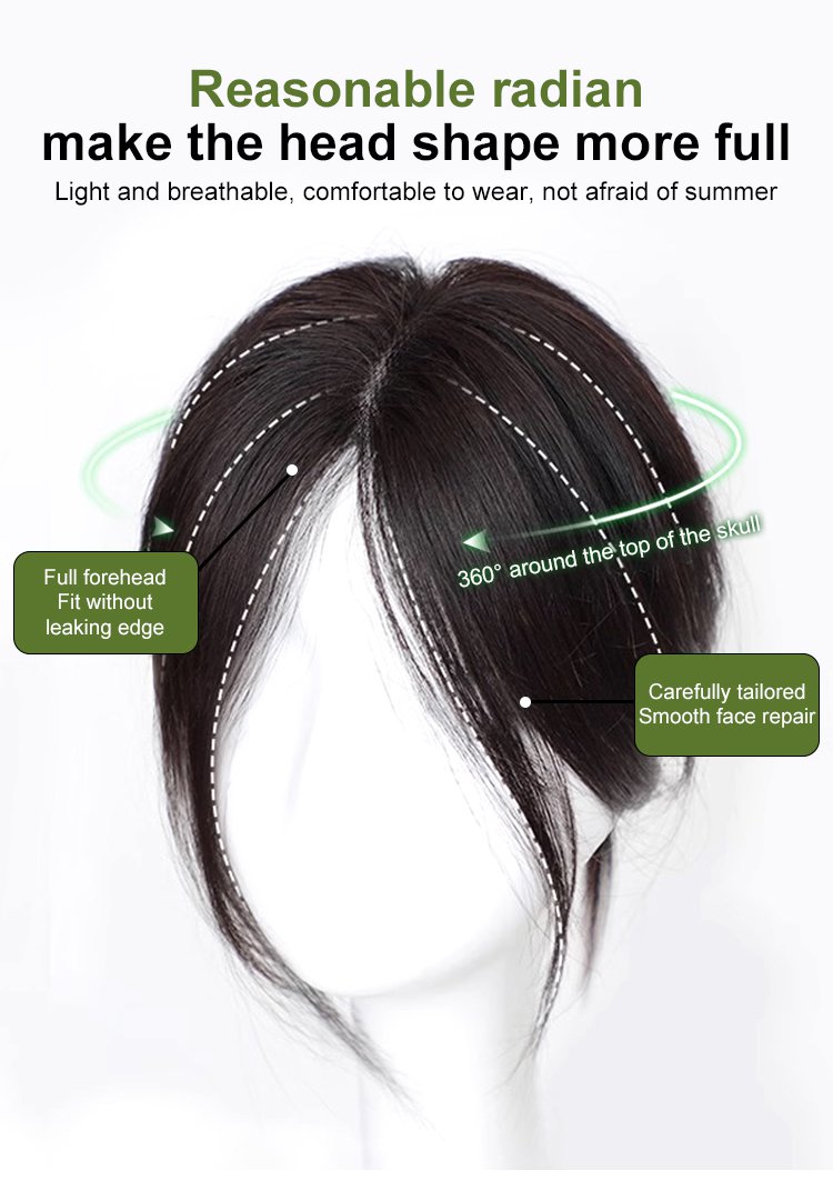 Natural Bangs- The seam is barely invisible, after wearing it, hiding the edge of the bangs in your hair will have a more realistic effect. Will make your face look small and delicate