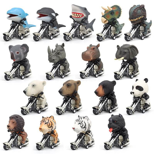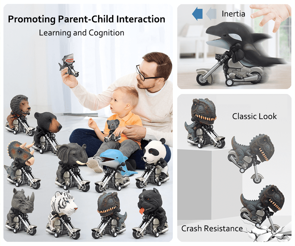 The simple push and go animal riders are easy for children to play. Using friction-power wheel to rev up the dino and it will go fast. The animal rider on motorcycles make playing racing games mighty fun.
